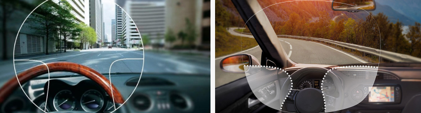 - в верхней части — зона для дали,
